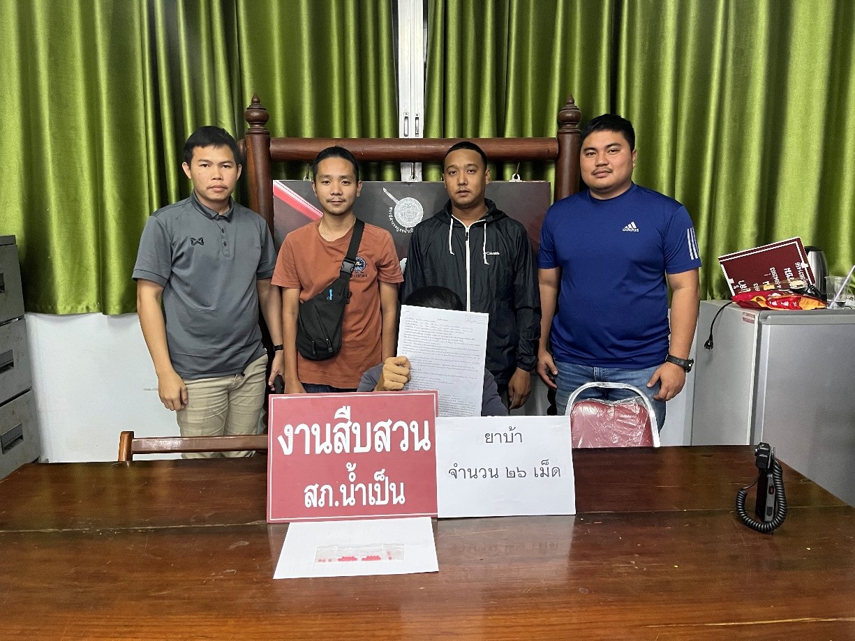 เมื่อวันที่ ๒๓ ธันวาคม พ.ศ.๒๕๖๗ ภายใต้อำนวยการของ พ.ต.ท.คมกฤต แจ่นประโคน สว.สภ.น้ำเป็น ชุดสืบสวน สภ.น้ำเป็น ได้มีการจับกุม ฐานกระทำความผิด “มีไว้ในครอบครองซึ่งยาเสพติดให้โทษประเภท1(ยาบ้าหรือเมทแอมเฟตามีน)โดยฝ่าฝืนต่อกฎหมายและเสพยาเสพติดให้โทษประเภท ๑ (ยาบ้าหรือเมทแอมเฟตามีน)โดยผิดกฎหมาย” ของกลาง ยาบ้า จำนวน ๒๖ เม็ด สถานที่จับกุม บริเวณในสวนผลไม้ทุเรียน หมู่ ๑ ตำบลน้ำเป็น อำเภอเขาชะเมา จังหวัดระยอง นำตัวผู้ต้องหาพร้อมของกลางส่งพนักงานสอบสวน สภ.น้ำเป็น เพื่อดำเนินการตามกฎหมายต่อไป