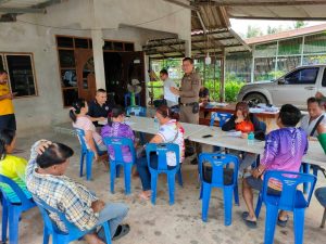 พ.ต.ท.คมกฤต แจ่นประโคน สว.สภ.น้ำเป็น พร้อมชุดปฏิบัติการฯ ออกพบปะผู้นำชุมชนและกรรมการหมู่บ้าน พร้อมจุดประกายความคิด เพื่อสืบสภาพชุมชน แสวงหาความร่วมมือ และแนะนำพร้อมกับประชาสัมพันธ์โครงการดำเนินงานตำบลยั่งยืน ณ บ้านมาบช้างนอน หมู่ 3 ต.น้ำเป็น อ.เขาชะเมา จ.ระยอง