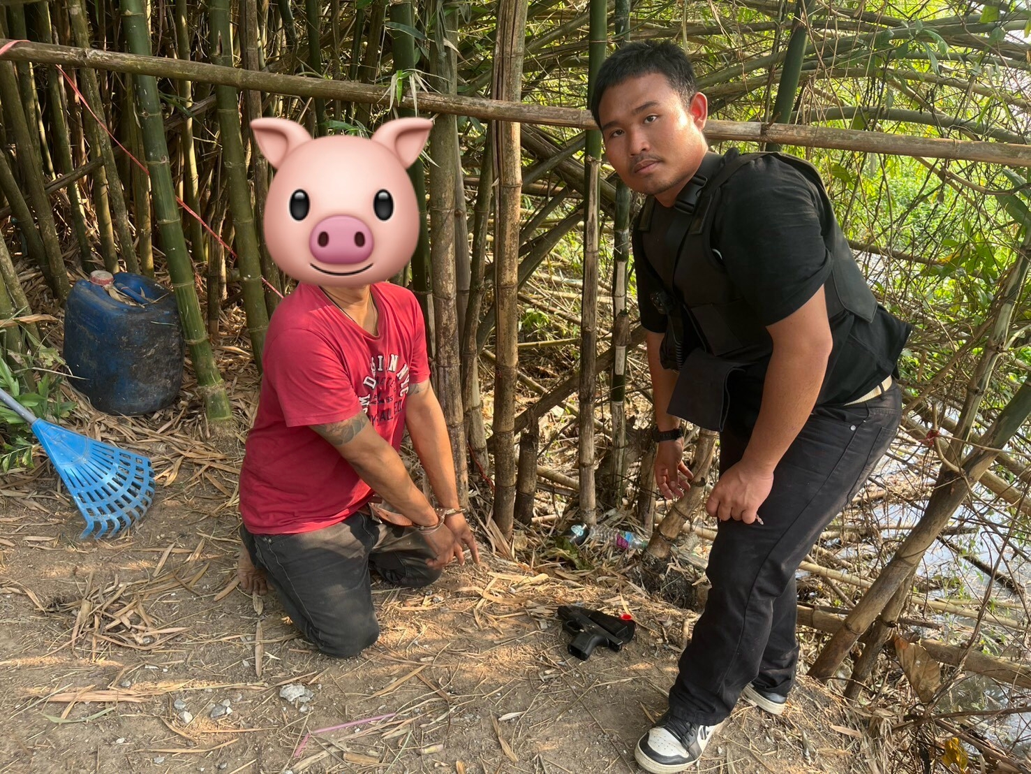 สถานที่จับกุม หลังบ้านเลขที่ 16/4 หมู่ 2 ต.น้ำเป็น อ.เขาชะเมา จว.ระยอง