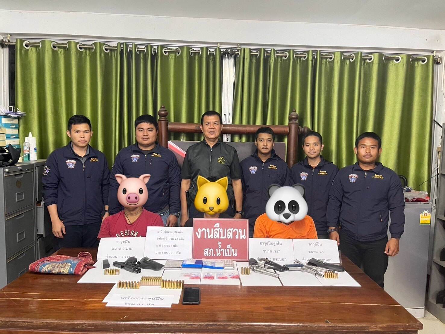 พ.ต.ท.คมกฤต แจ่นประโคน สว.สภ.น้ำเป็น พร้อมชุดสืบสวน สภ.น้ำเป็น ร่วมกันจับกุมผู้ต้องหา