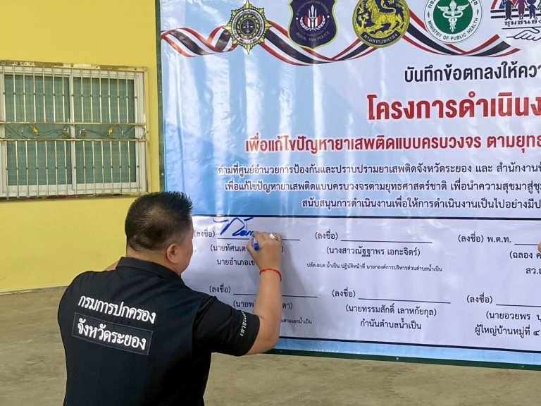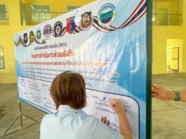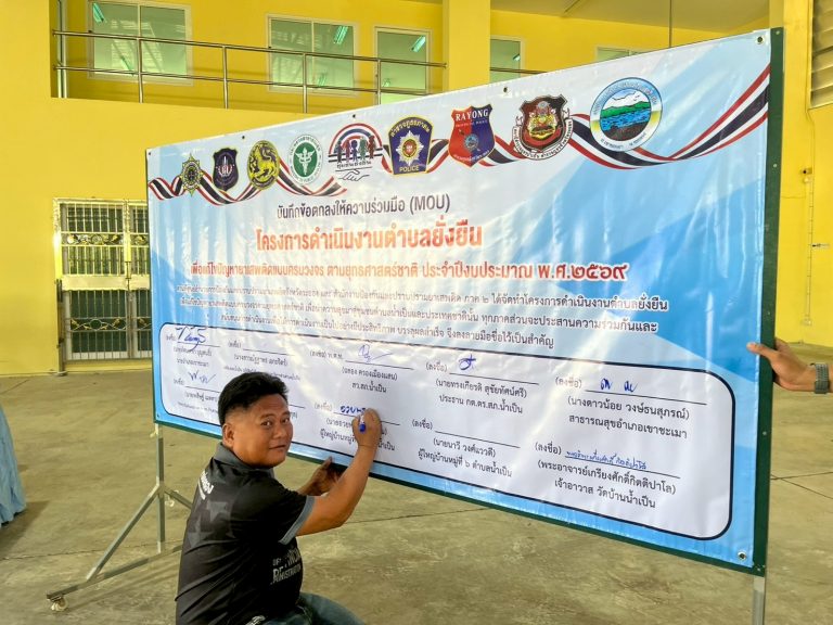 รายละเอียดกิจกรรม: นายอำเภอเขาชะเมาเดินทางมาเป็นประธานในพิธีเปิด “โครงการดำเนินงานตำบลยั่งยืน เพื่อแก้ไขปัญหายาเสพติดแบบครบวงจรตามยุทธศาสตร์ชาติ ประจำปีงบประมาณ พ.ศ. 2569” พื้นที่หมู่ 6 ตำบลน้ำเป็น โดยมีการร่วมลงนามบันทึกข้อตกลง (MOU) ระหว่างหัวหน้าส่วนราชการและภาคีเครือข่ายในพื้นที่ประกอบด้วย: