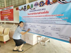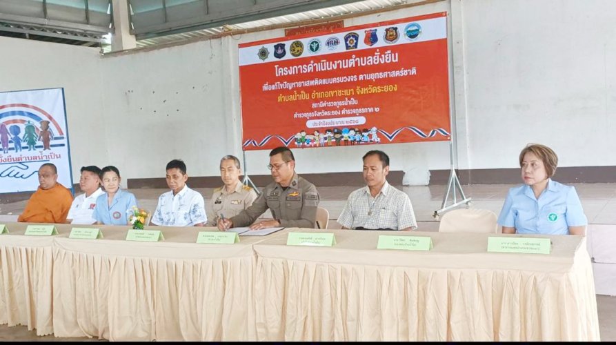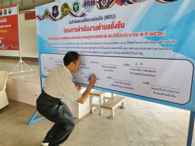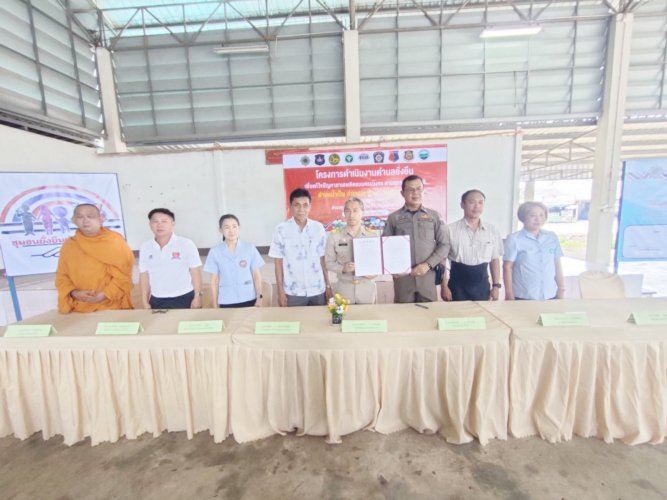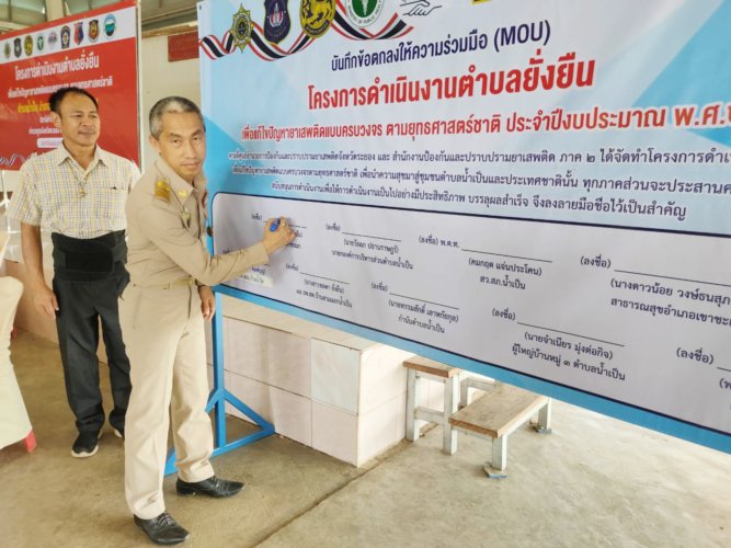 ลงนาม MOU บูรณาการแก้ปัญหายาเสพติดในเขาชะเมา ณ ศาลาประชาคมบ้านสามแยกน้ำเป็น