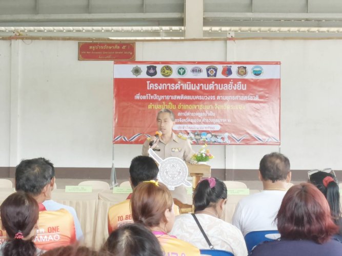 นายวรภพ คงธนจรัส ปลัดอาวุโสอำเภอเขาชะเมา รรท.นายอำเภอเขาชะเมา ได้เดินทางมาเป็นประธานพิธีเปิดโครงการดำเนินงานตำบลยั่งยืน เพื่อแก้ปัญหายาเสพติดแบบครบวงจรตามยุทธศาสตร์ชาติ ประจำปีงบประมาณ พ.ศ.๒๕๖๘ หมู่ที่ 1 ตำบลน้ำเป็น อำเภอเขาชะเมา จังหวัดระยอง