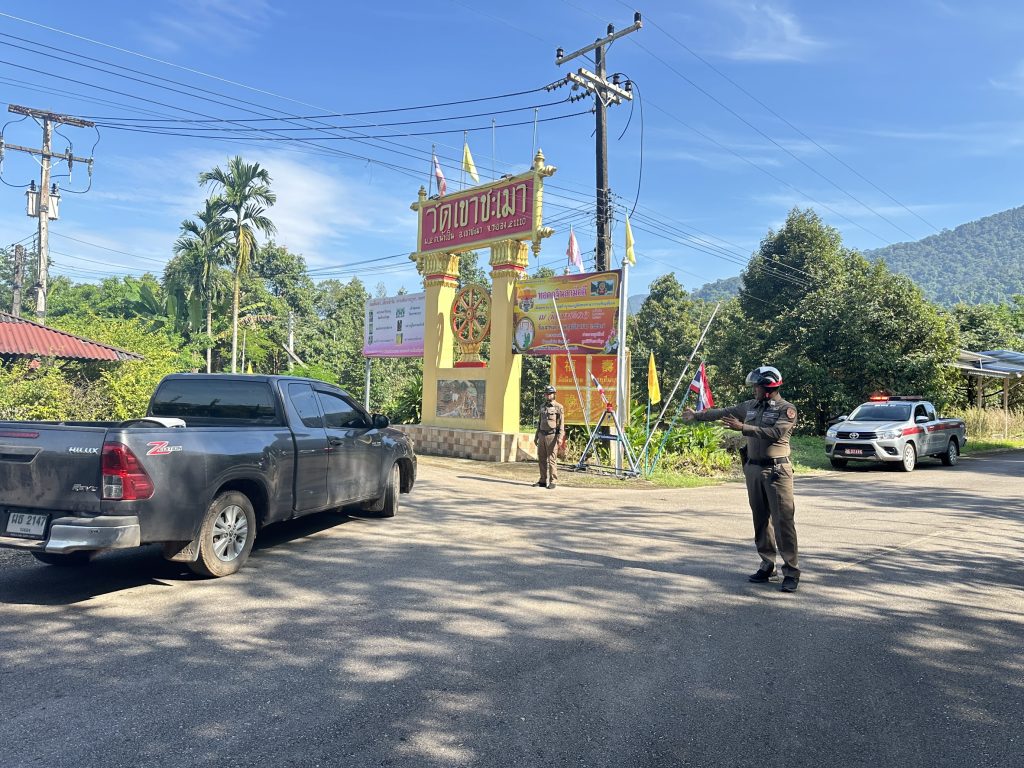 เมื่อวันที่ 2 พ.ย.67 เวลา 10.00 น. เจ้าหน้าที่ตำรวจจราจรดูแลความปลอดภัยและอำนวยความสะดวกด้านการจราจรให้กับประชาชนที่ร่วมงานทอดกฐิน ณ วัดเขาชะเมา ม.2 ต.น้ำเป็น อ.เขาชะเมา จ.ระยอง