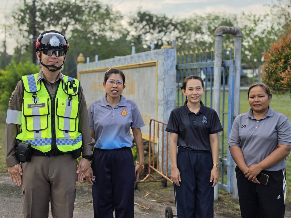 เจ้าหน้าที่ตำรวจจราจรรักษาความปลอดภัยและอำนวยความสะดวกด้านการจราจร รร.บ้านน้ำใส