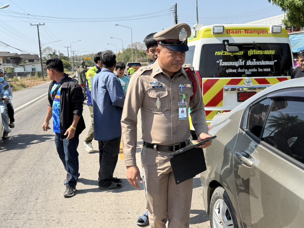 ร.ต.อ.จีรยุทธ ตุ่นป่า รอง สว.(สอบสวน) สภ.น้ำเป็น พนักงานสอบสวนเวร ออกตรวจที่เกิดเหตุอุบัติเหตุ